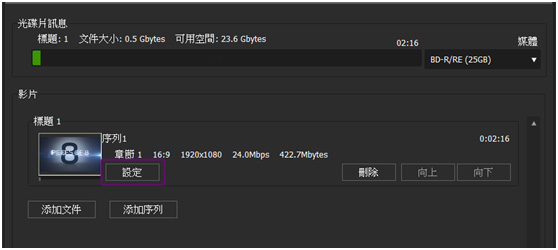 同樣,在藍光創作視窗可以看到“Intel Quick Sync Video”硬件加速器的功能。選擇“導出”,“輸出到DVD/ BD”,啟動光盤創建對話框。當您單擊縮略圖標籤旁邊的“ 設定 ”,以顯示設置畫面,如果現在FIRECODERBle還支援的話,實際上是和“Intel Quick Sync Video”硬件加速器的功能是一樣的,“它會出現一個 [ 使用硬體編碼 ] 供勾選使用。